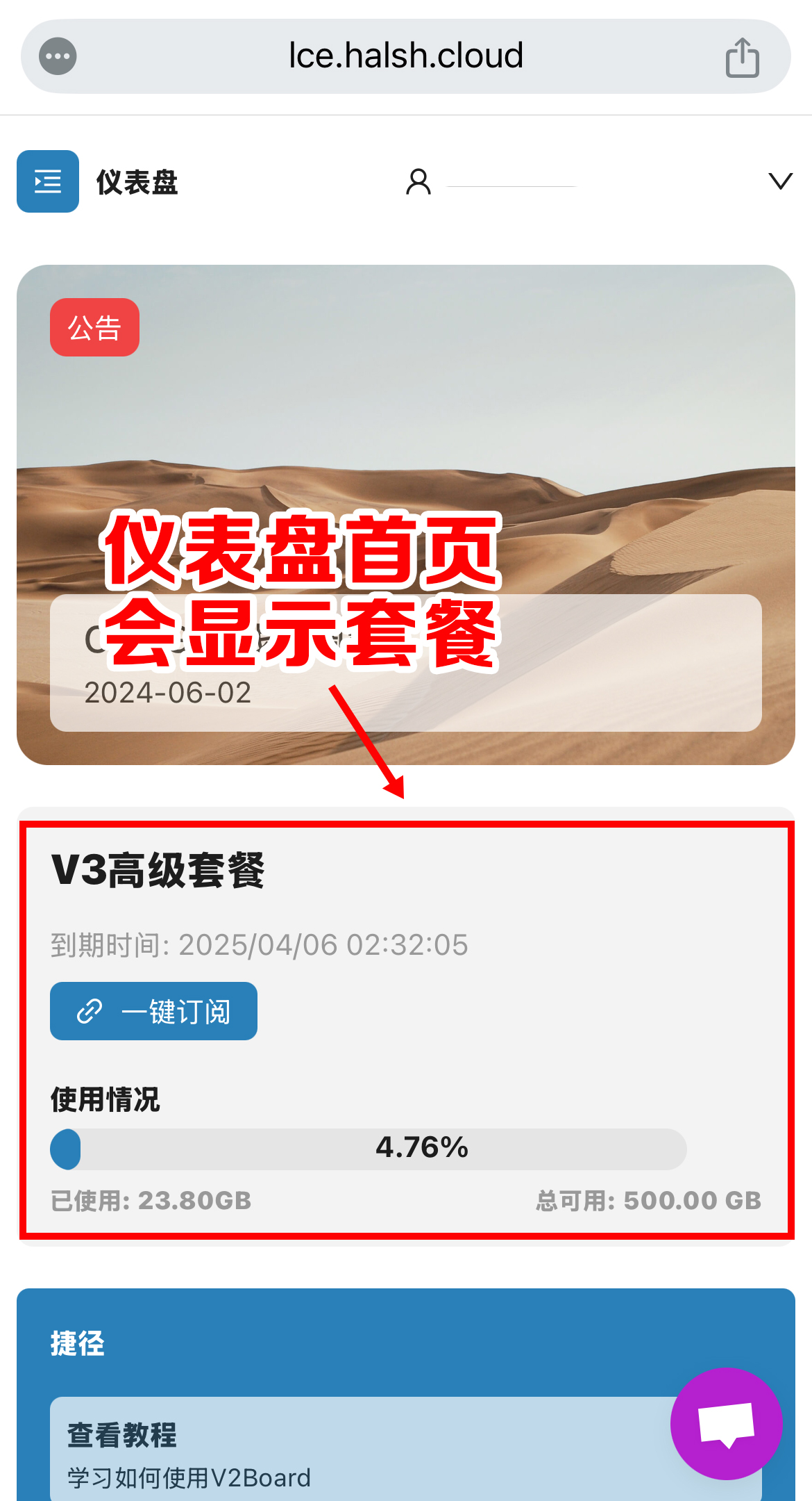①若回到官网仪表盘主页,依旧未显示套餐,请等待五分钟后再次刷新网页。